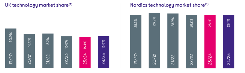 The UK technology market is worth £30bn and the Nordics market £11bn. Our scale underpins our long-term supplier relationships while our high brand awareness creates growth opportunities through market share expansion.