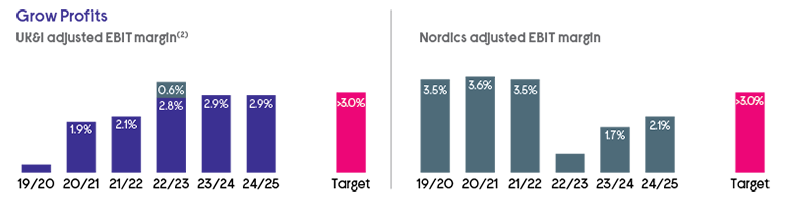 2. UK&I adjusted EBIT margin in 22/23 includes a non-repeat £30m mobile revaluation which accounts for 0.6% of total UK&I adjusted EBIT margin.